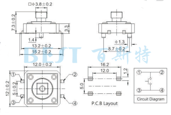 規格尺寸:12×12輕觸開關