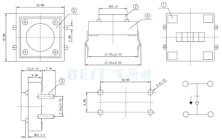 輕觸開關12×12_TS-1103_參考圖紙: