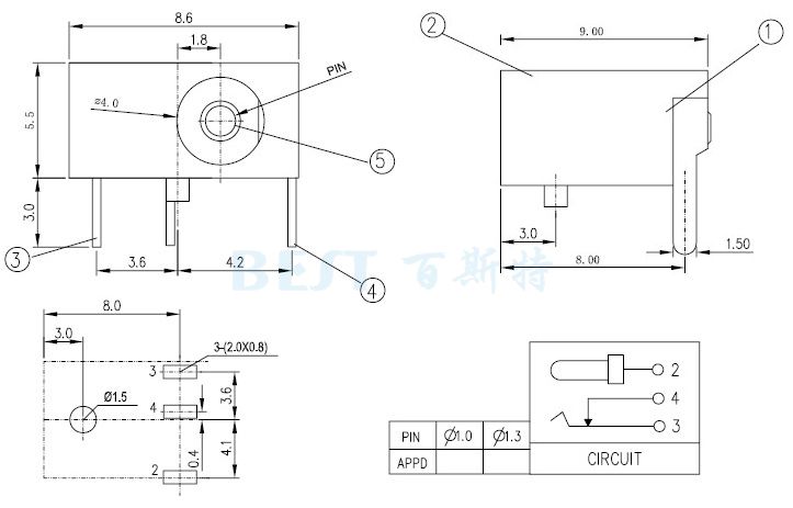 dc電源插座005C額定值DC30V0.5A,插入力度是3到25N,針芯直徑規(guī)格:內(nèi)芯大小φ1.3mm,塑膠材質(zhì):PBT UL94V-0阻燃/耐高溫/環(huán)保。